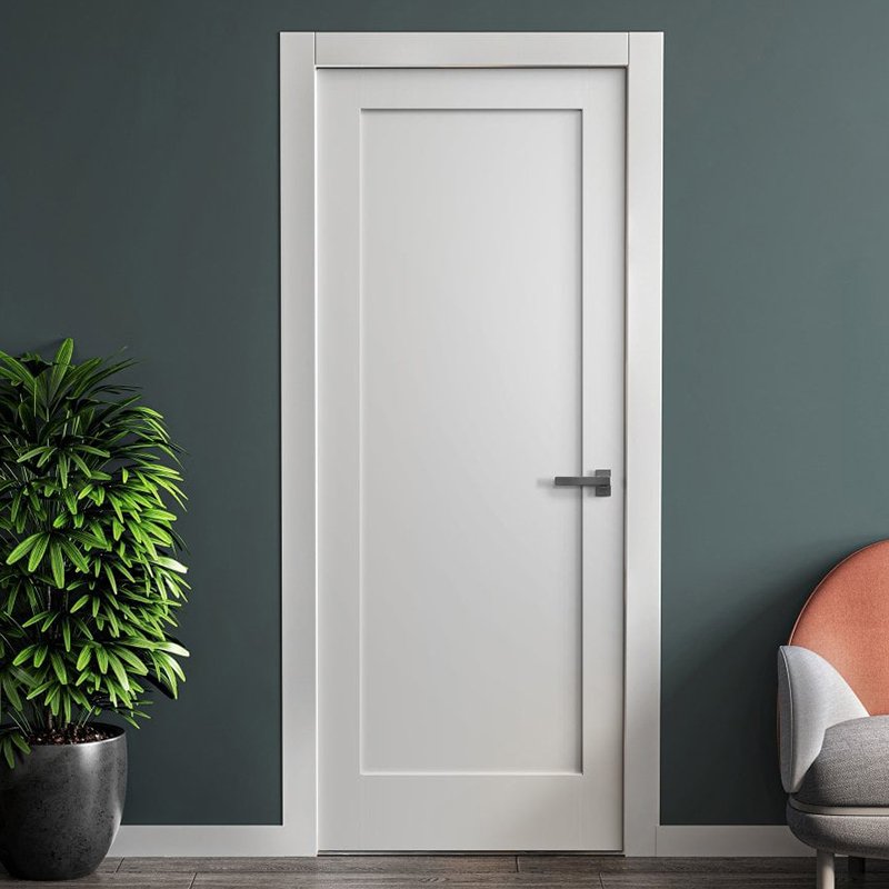 White 1-panel Smooth Solid core MDF Shaker Door